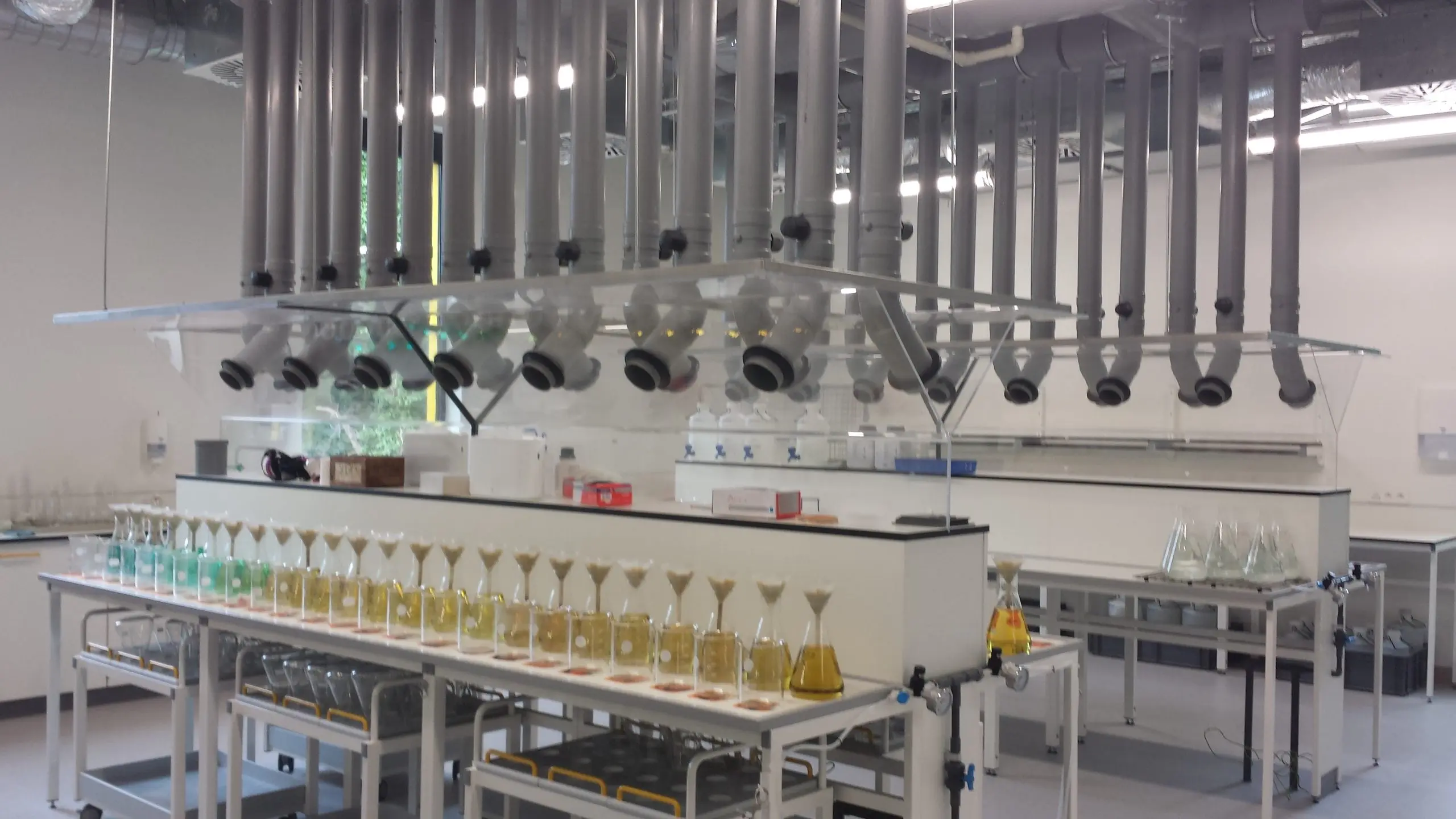 laboratoire et rénovation du bâtiment existant en bureaux et locaux sociaux;