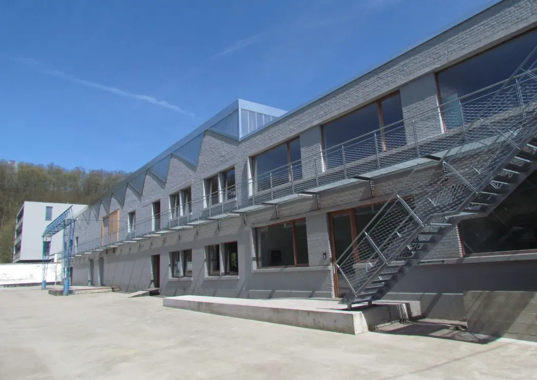 Transformation d’un ancien hall industriel, constitué d’un rez-de-chaussée et d’un étage, en espace d’exposition et ateliers pour artistes.