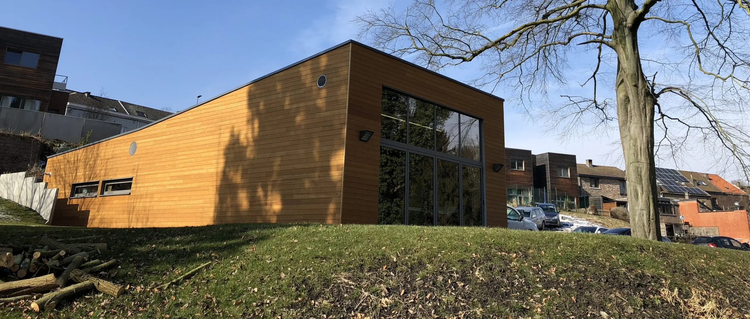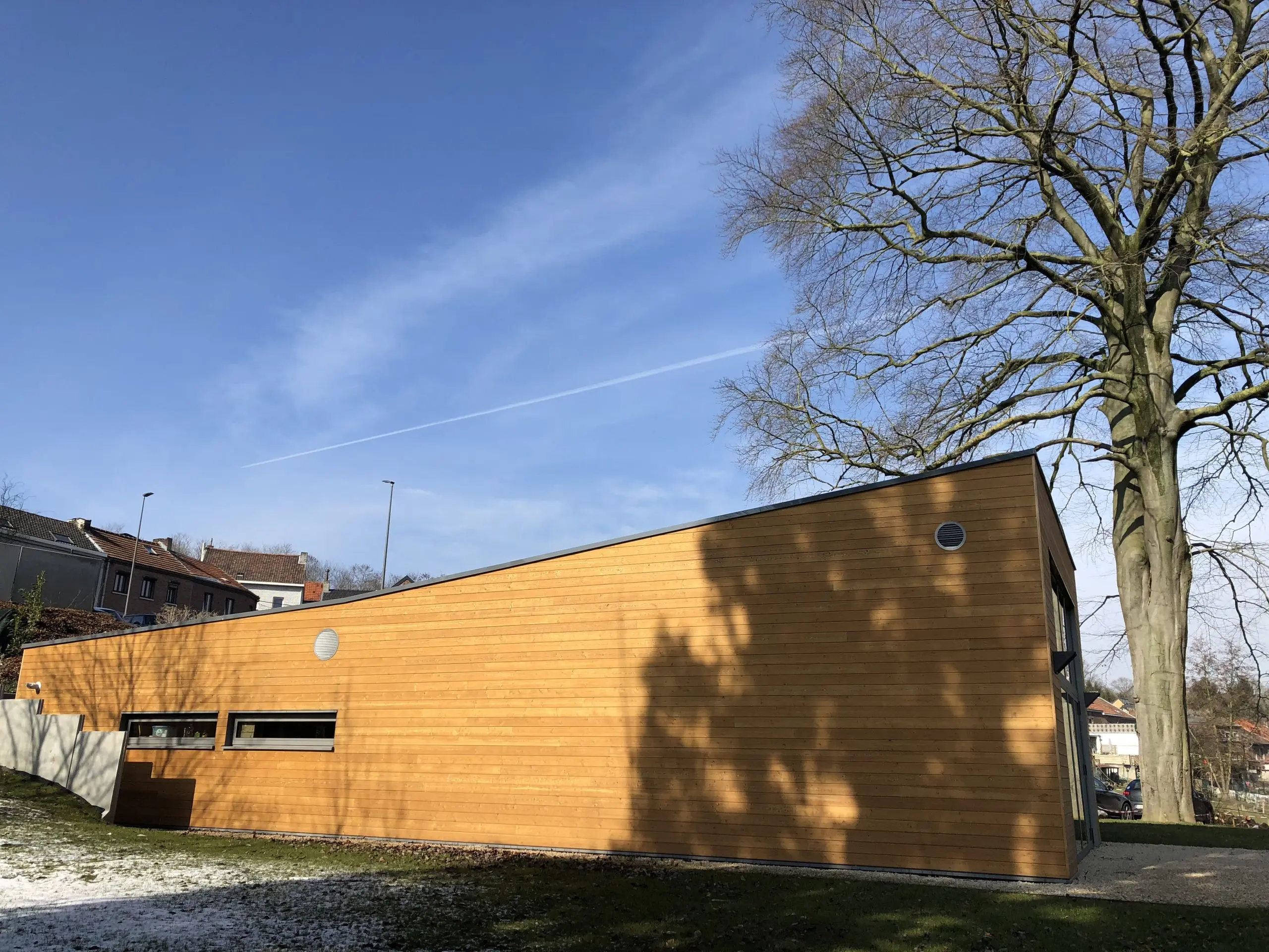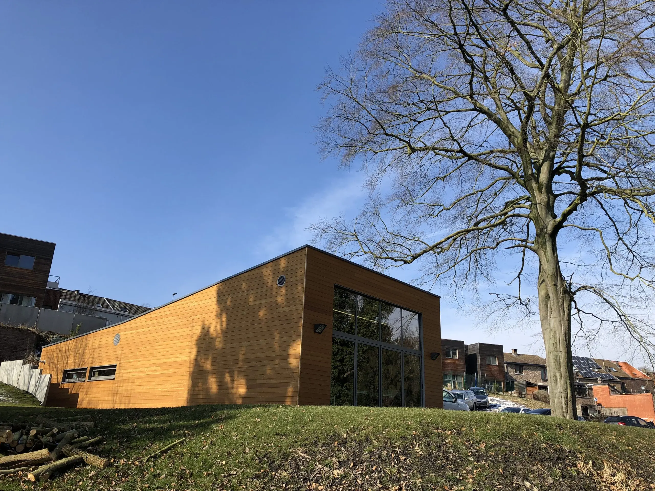 Le bâtiment se compose d’une salle polyvalente, d’une cuisine collective avec comptoirs et de sanitaires