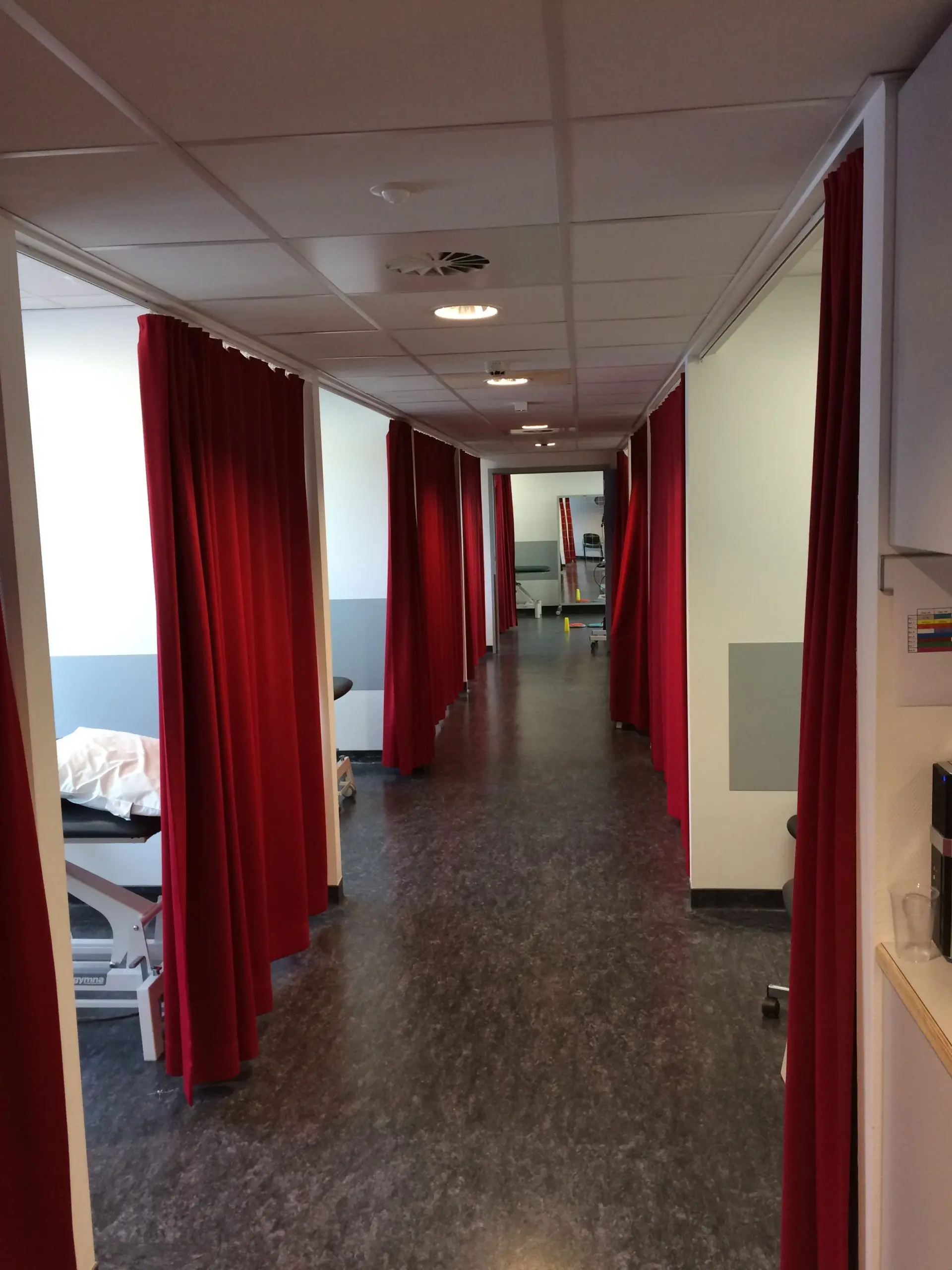 Aménagement du service de médecine physique dans les anciens locaux sociaux de la clinique.