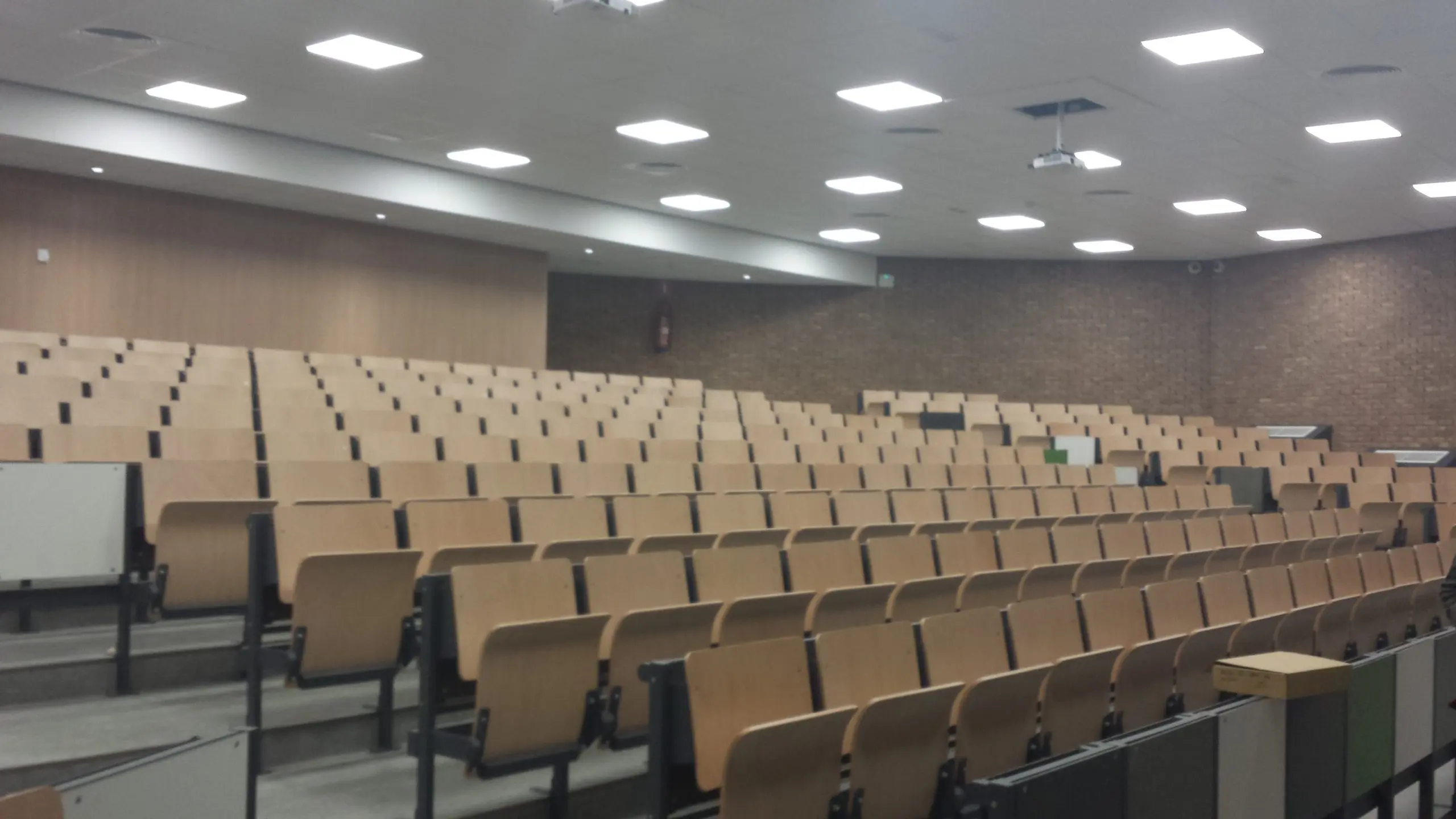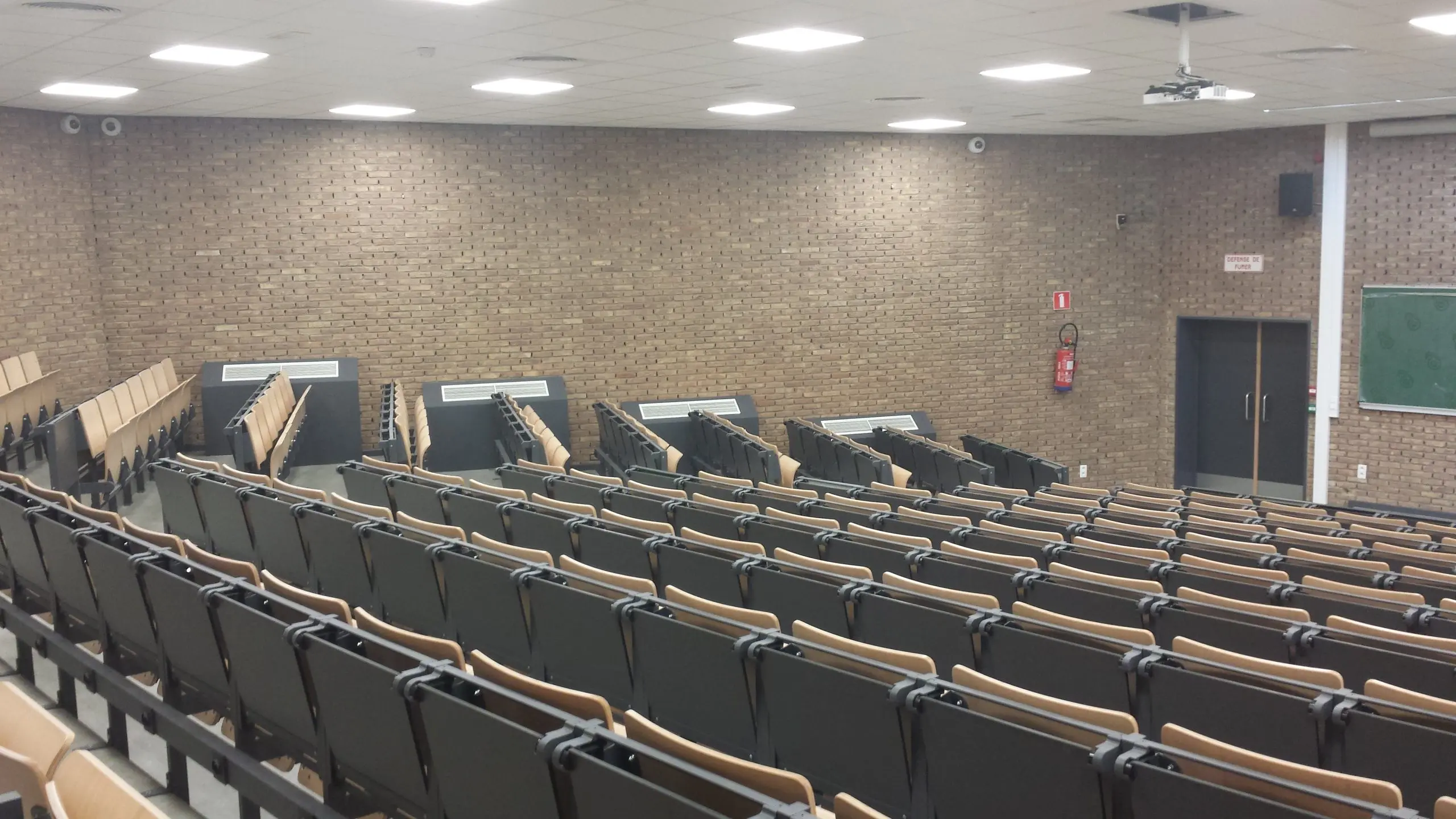 Les travaux ont consisté en la rénovation du grand auditoire disposant de 300 places assises.